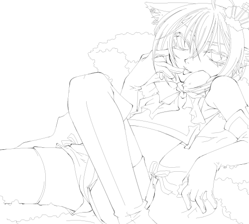 ですが、指を舐める仕草やホットパンツに紐パンなど、描いていて凄く楽しかったです。あ、尻尾忘れてる…。